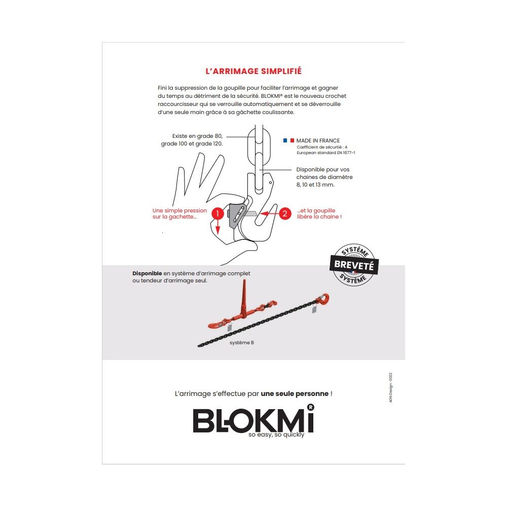Alternative au crochet tradditionnel avec goupille de sécurité qui est régulièrement enlevée pour faciliter l'installation. Hors le dispositif de sécurité est obligatoire selon la norme d'arrimage 12195-3.