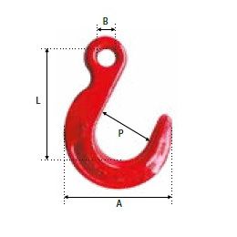 Crochet de fonderie à œil grade 80 en acier allié, trempé et revenu,finition peinture rouge .