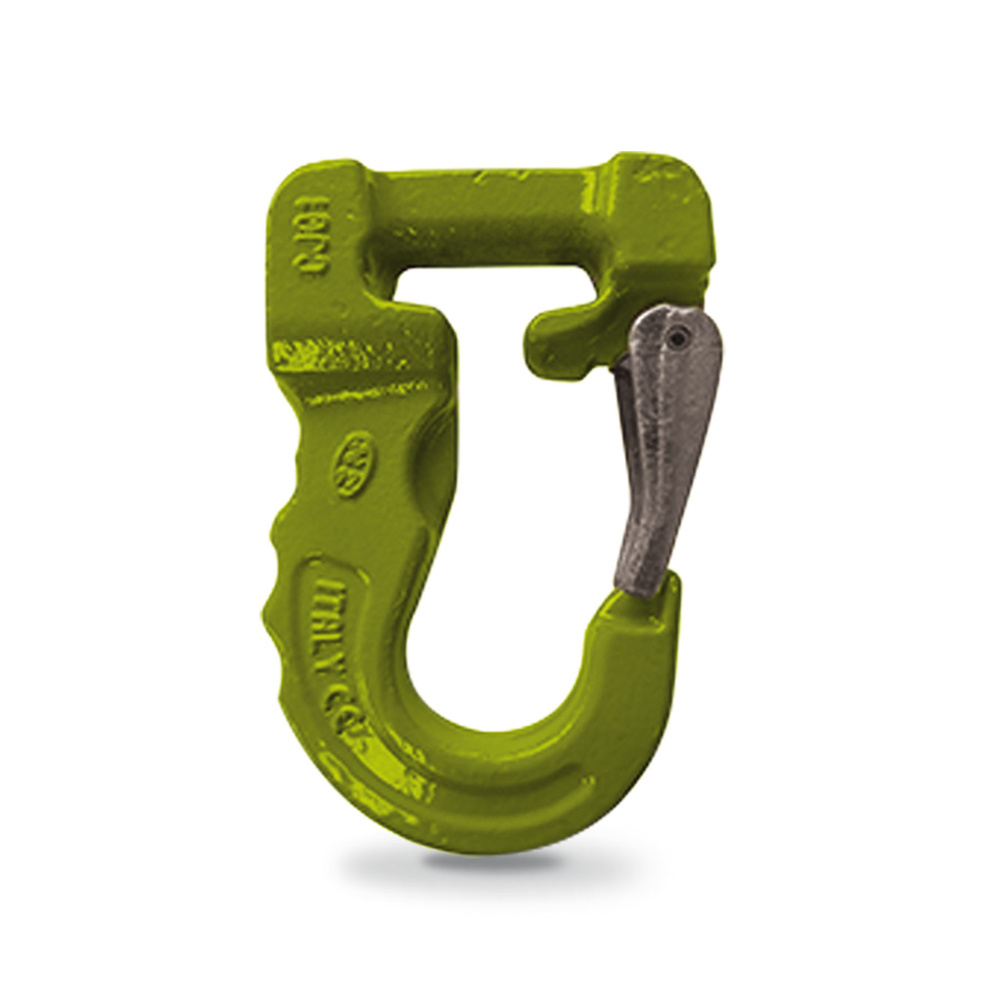 Le crochet pour élingue textile est dédié aux opérations de levage et de manutention de charges de 1 tonne à 6 tonnes, ses capacités de levage étant associées à un code couleur (lilas pour 1 tonne, vert pour la 2 tonnes, etc).