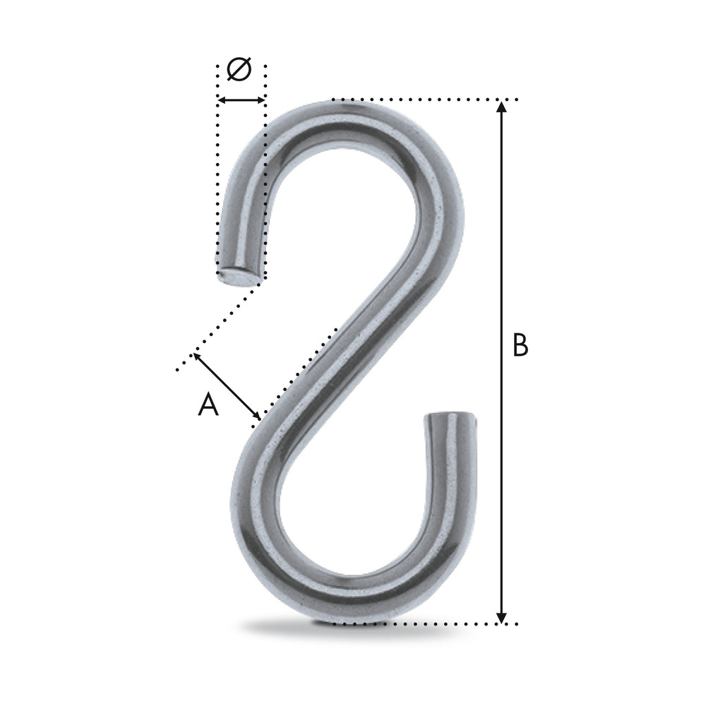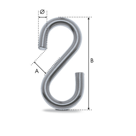 Ce crochet S inox est disponible d'un diamètre 3 mm à un diamètre 6 mm.