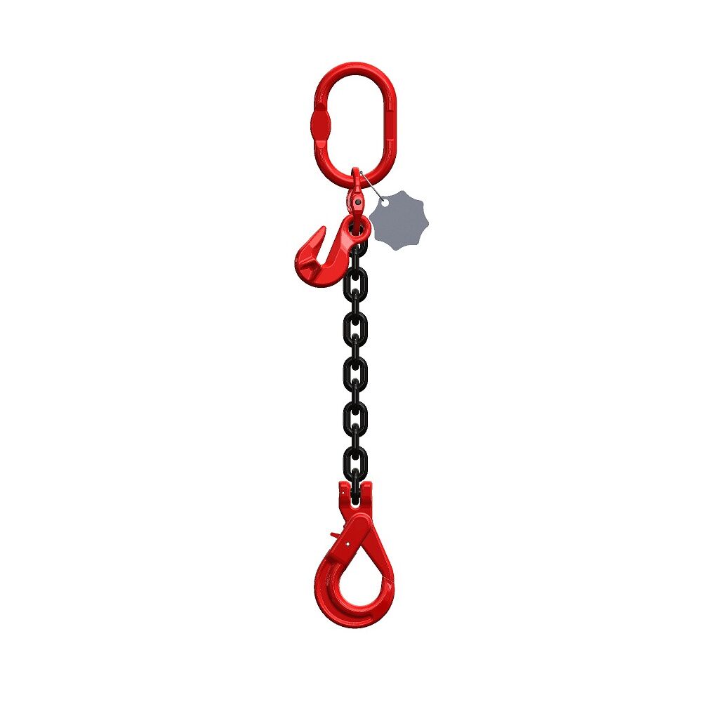 L'élingue chaîne 1 brin Grade 80 avec crochets automatique et raccourcisseur est régulièrement manipulée pour des opérations de levage et de traction verticale de charges à partir d'un axe ou d'un point en hauteur (grue, palan).