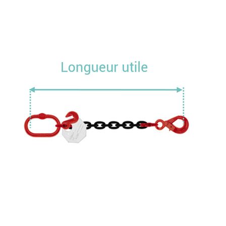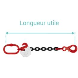 Cette élingue chaîne de levage est munie à la fois d'un crochet automatique (dont l'ouverture varie de 29 à 60 mm) et d'un crochet raccourcisseur servant à raccourcir la chaîne pour un levage sur-mesure selon la hauteur de l'élément que vous souhaitez manutentionner.