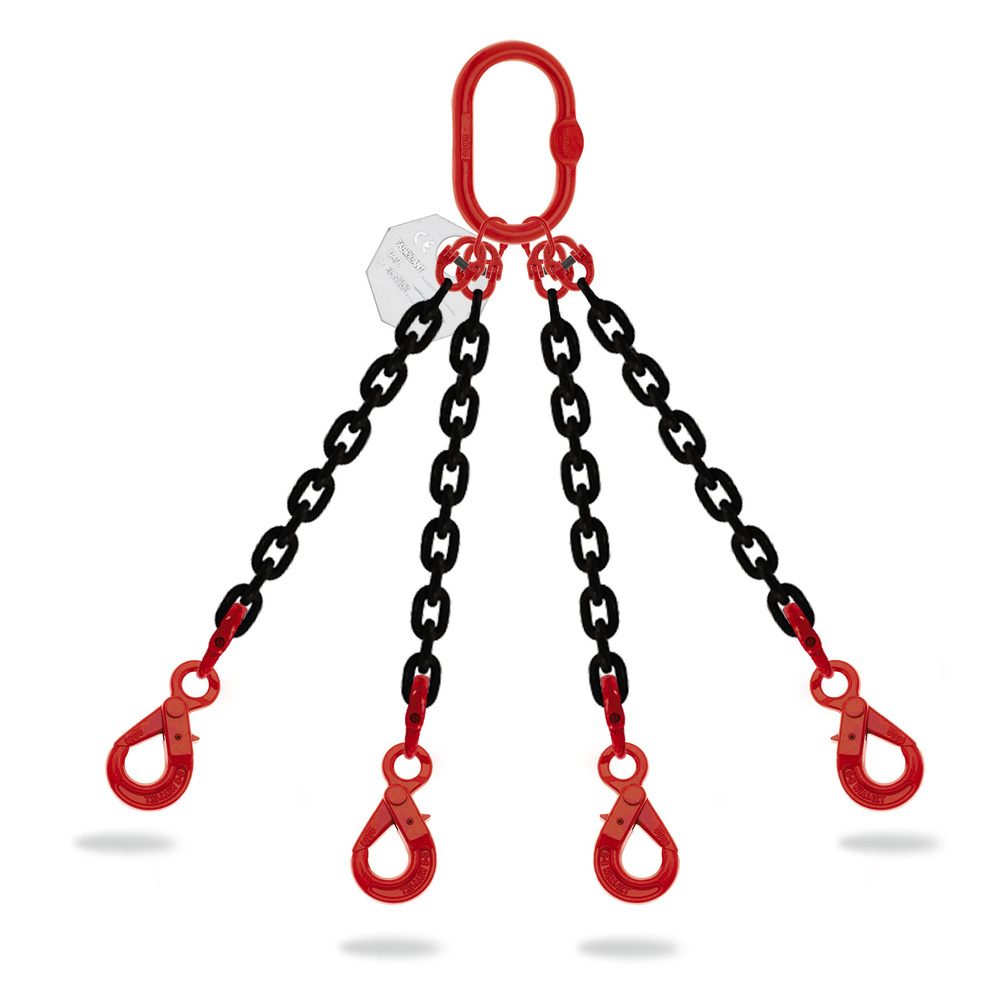 L'élingue chaîne 4 brins Grade 80 avec crochets automatiques (sans crochets raccourcisseurs) est dédiée aux opérations de levage et de traction verticale pour des travaux de Gros oeuvre BTP et travaux publics (terrassement, nivellement, extraction, creusement sur les chantiers de construction).