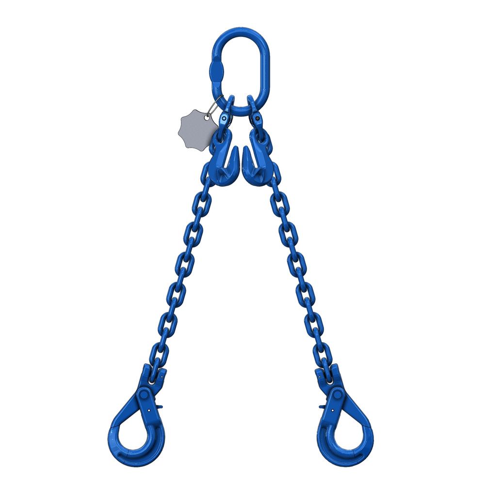 La chaine de levage 2 brins Grade 100 avec crochets automatiques et raccourcisseurs est généralement employée pour manutentionner des charges moyennement encombrantes (C.M.U. jusqu'à 14 tonnes) avec les points d'accroches adaptés au centre de gravité de la pièce.