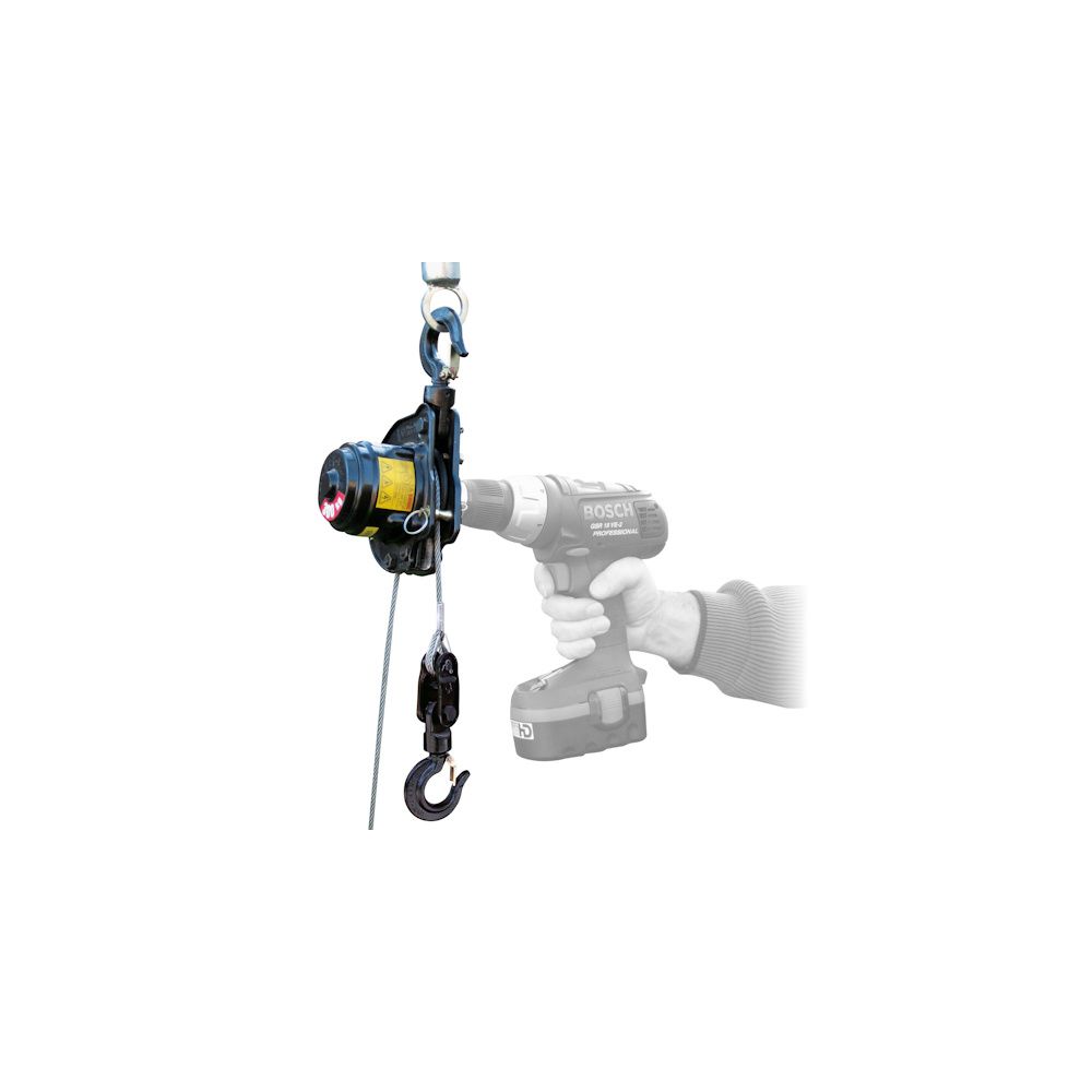 Cet appareil peut être utilisé en levage ainsi qu' en halage, en déplaçant la charge de manière horizontale ou selon l'inclinaison de la pente. Cet appareil fonctionne à l'aide d'une visseuse ou d'une perceuse, avec ou sans fil (non fournies).