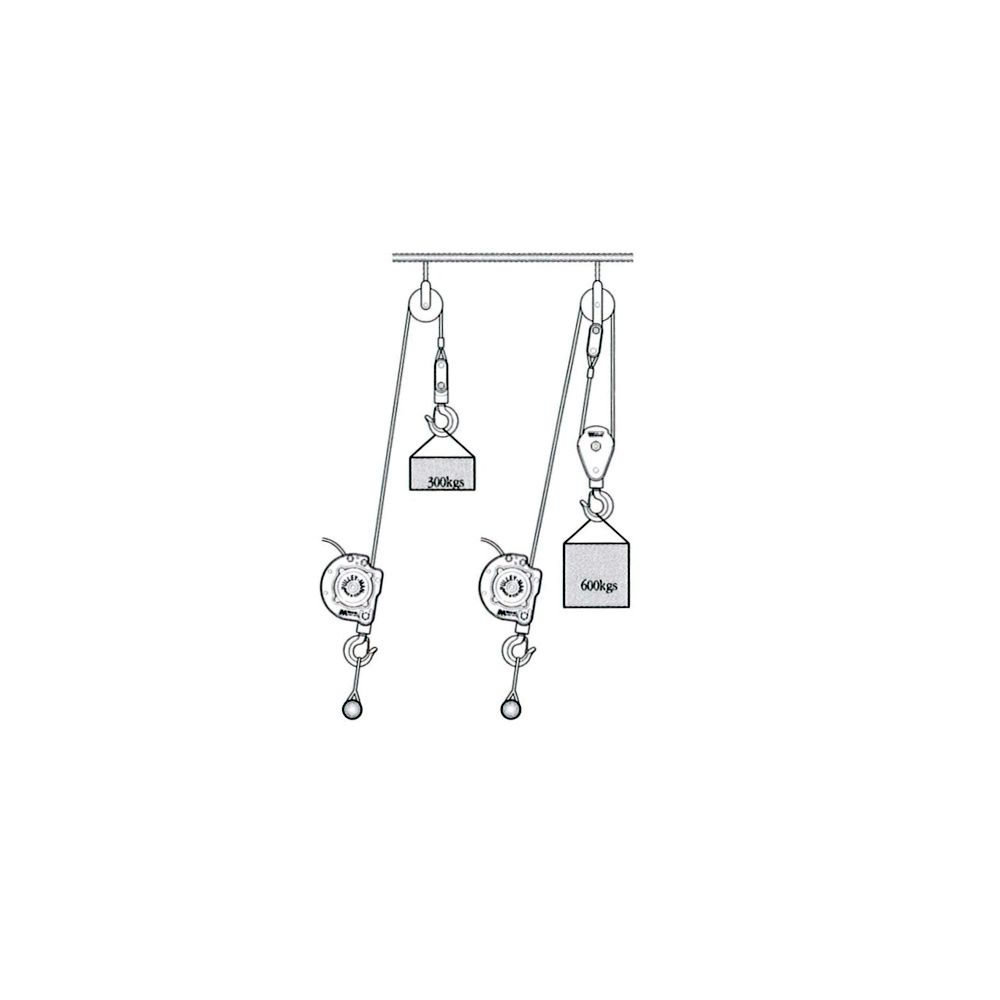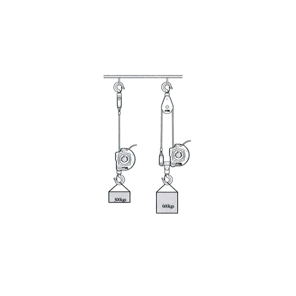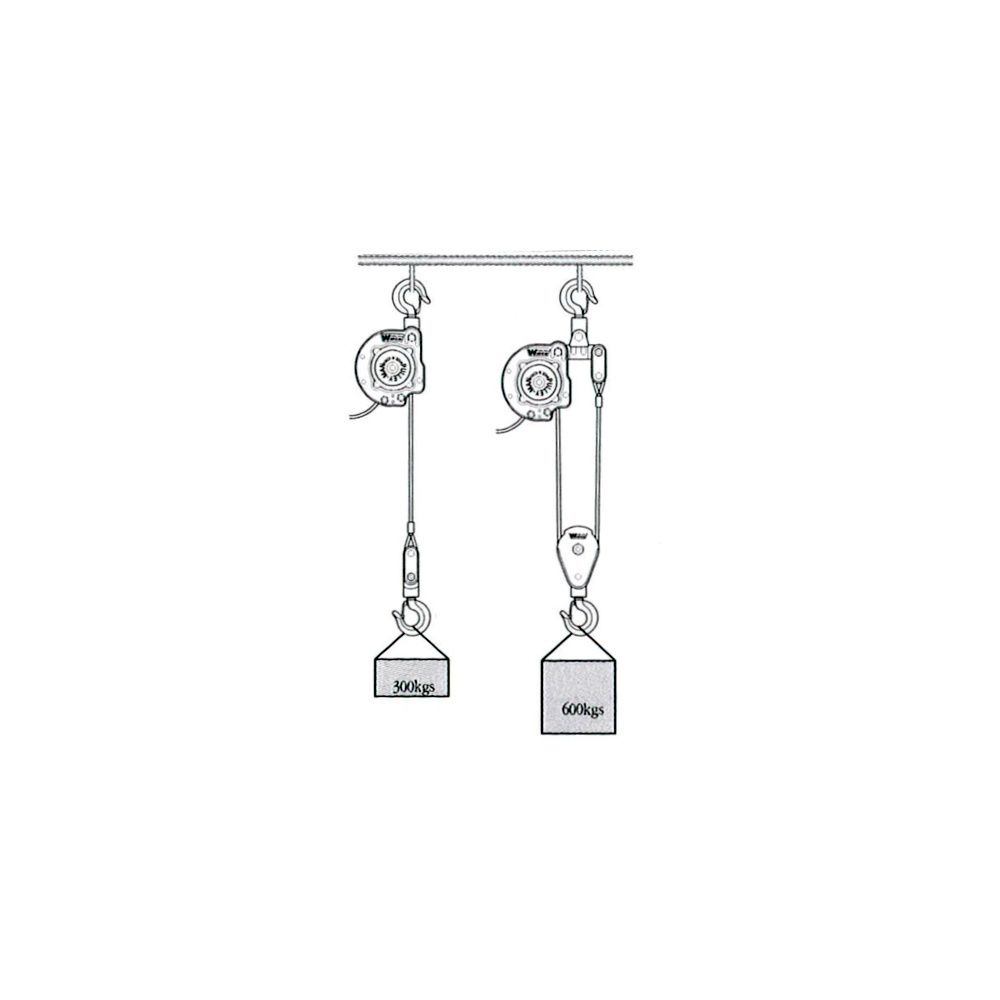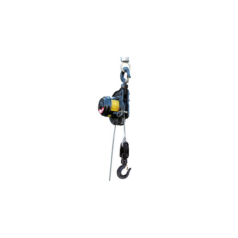 Mini palan portatif à câble permettant le levage et la manutention de charges jusqu'à 300 Kg pour une hauteur de cable standard de 12m mais pouvant aller jusqu'à 50m sur demande. Il est possible d'équiper ce palan d'une moufle permettant une capacité maximale de 600 kg.