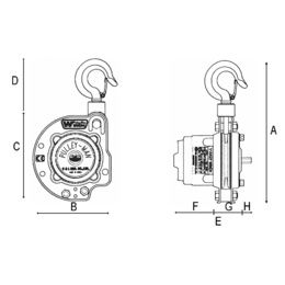 Ce matériel de manutention dispose d'un câble en acier galvanisé, d'une longueur standard de 12 m. Ce câble est relié à un crochet de suspension équipé de linguets de sécurité.
