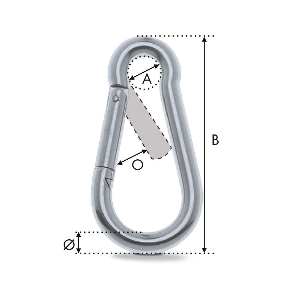 On En Fait Des Tonnes met à votre disposition ce mousqueton pompier en acier inoxydable AISI 316L, matériau résistant en milieu salin, à utiliser avec des chaînes, câbles ou drisses, décliné en diamètre de 5mm à 12mm.