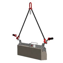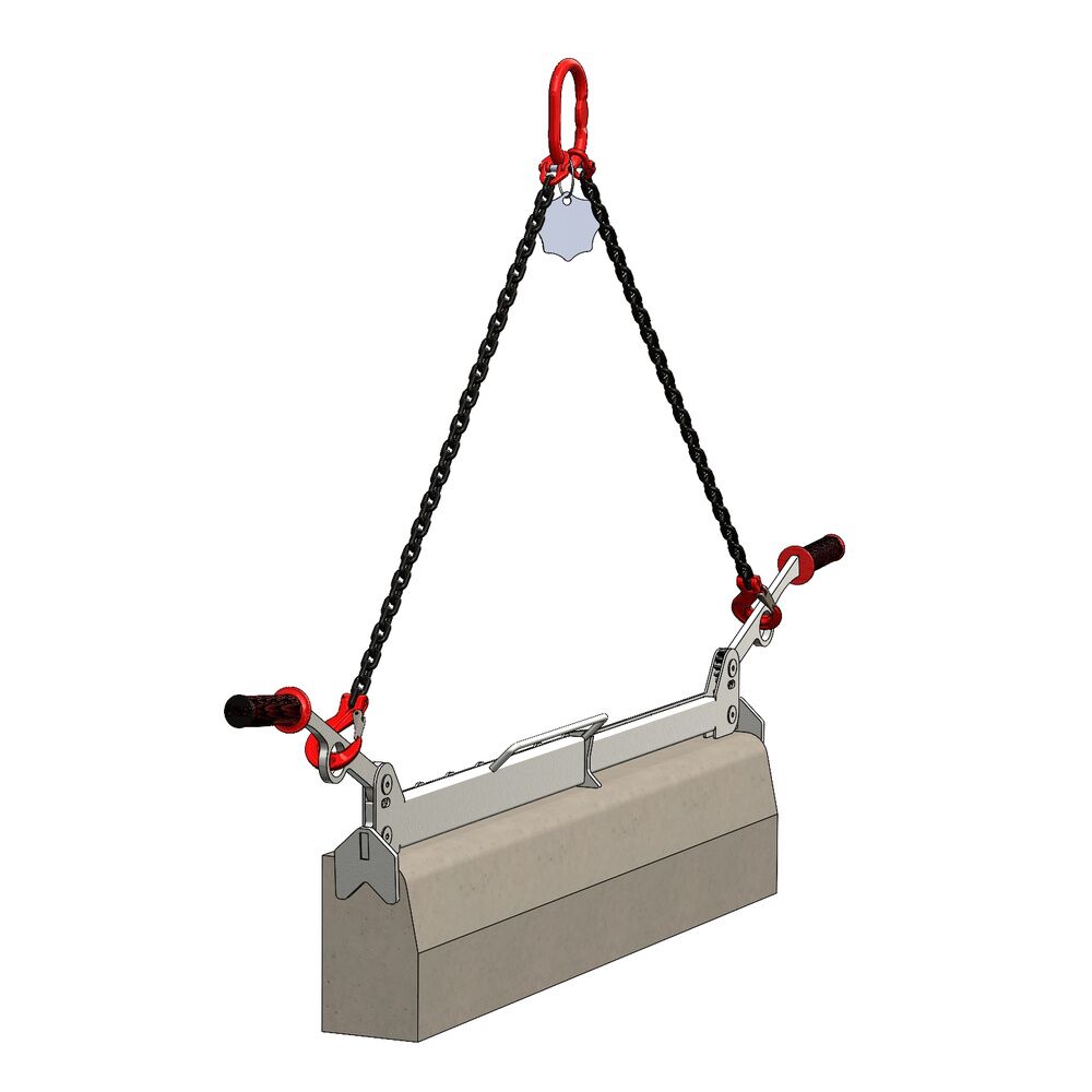 Pour un levage mécanique : fixer les crochets des 2 brins de chaîne aux ouvertures positionnées sur les poignées de la pince puis raccorder la maille de tête de l'élingue à votre appareil de levage (grue, mini pelle...).