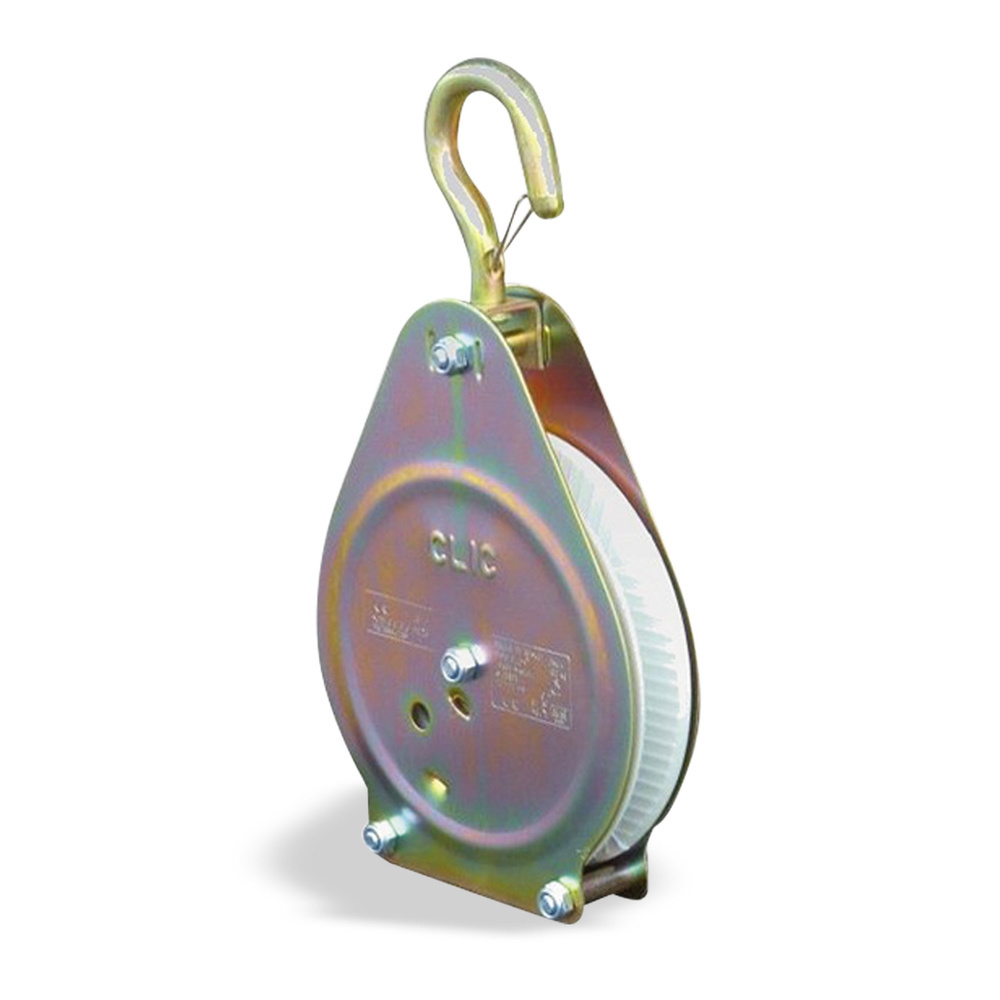 Cette poulie de levage à cliquet et crochet ou appelée aussi poulie de renvoi sert à accueillir un cordage de 20 mm à 30 mm et le faire coulisser à moindre effort grâce au cliquet pour manutentionner une charge jusque 80 kg maximum. Poulie anti retour .