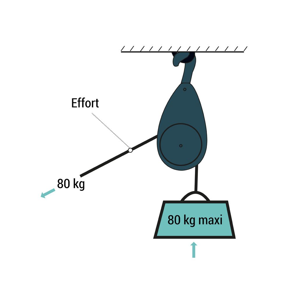 Pour choisir sa poulie, vérifier que le diamètre de votre cordage est bien compris entre 20 mm et 30 mm et que le poids de la charge à manutentionner est inférieure ou égale maximum à 80 kilos.