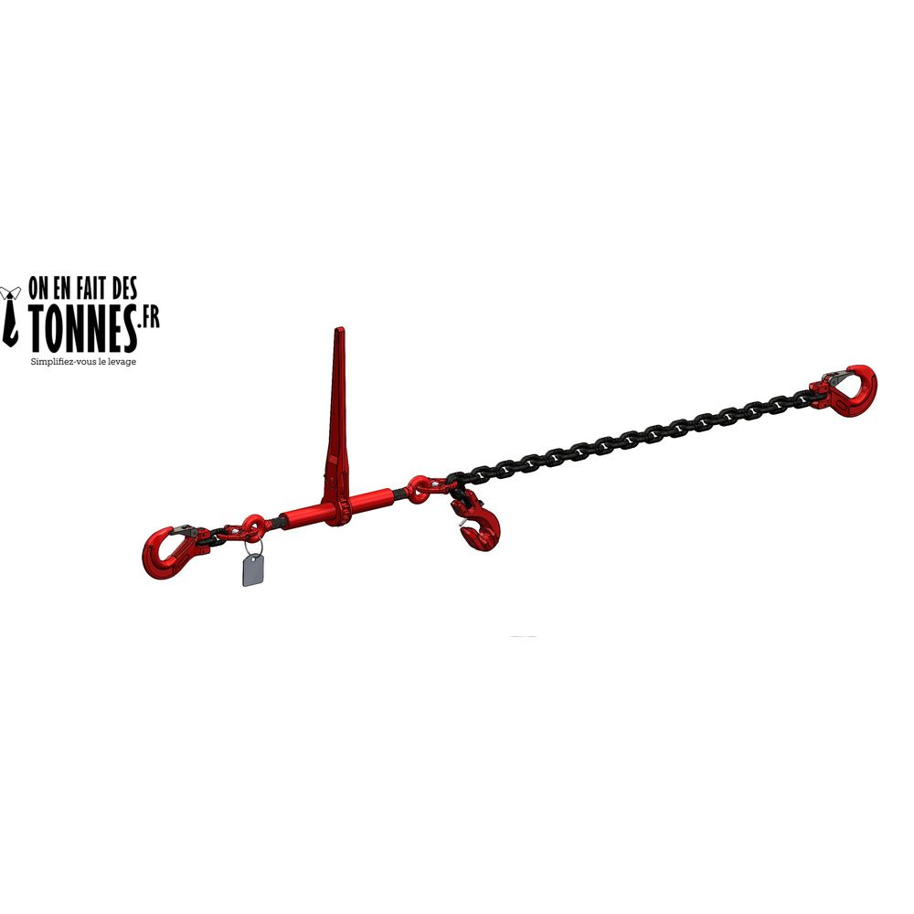 D’une grande solidité, ce kit complet d'arrimage confectionné par ON EN FAIT DES TONNES est composé d’un tendeur intégré à cliquet à 2 yeux, distribuant une chaine Haute Résistance Grade 80 en acier allié traité cataphorèse, des maillons d’assemblage, un crochet à linguet à chape, ainsi qu'un crochet raccourcisseur à chape sur un brin de chaîne vous permettant de régler sa longueur à votre convenance. Ce système complet n’est pas destiné au levage. Il permet d'arrimer les chargements d’un navire, d’un véhicule ou encore d’un avion.