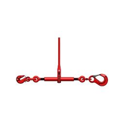 Tendeur à cliquet équipé d'un crochet à linguet et d'un racourcisseur goupillé