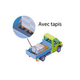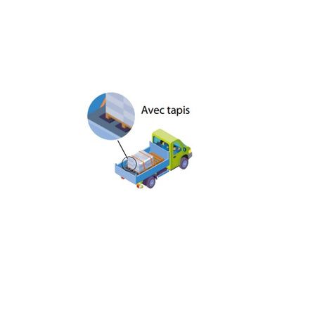 Ce tapis permet notamment de réduire le nombre de sangles ou de diminuer le diamètre de chaine à utiliser pour maintenir la charge sécurisée.