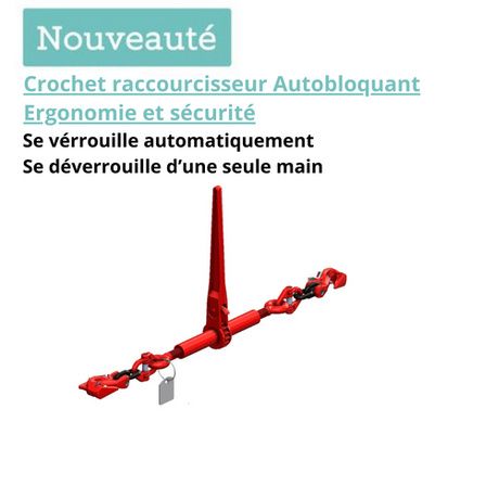 Tendeur d'arrimage à cliquet pour chaine d'arrimage équipé de nouveaux crochets racourcisseur coulissant (BLOKMI).