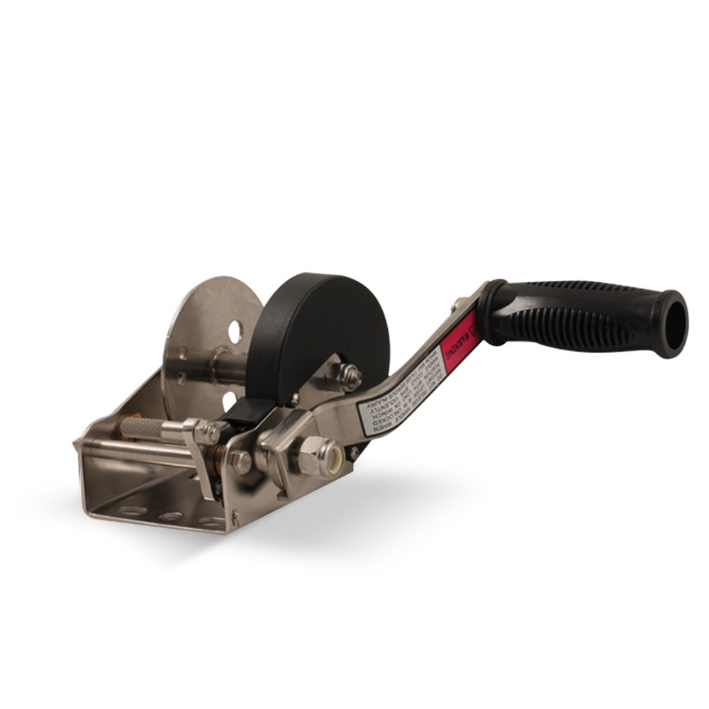Treuil de halage ou de traction en inox pratique en mobilité sur camions ou remorques, permettant d’enrouler ou dérouler en permanence le câble sur son tambour actionné par une manivelle.